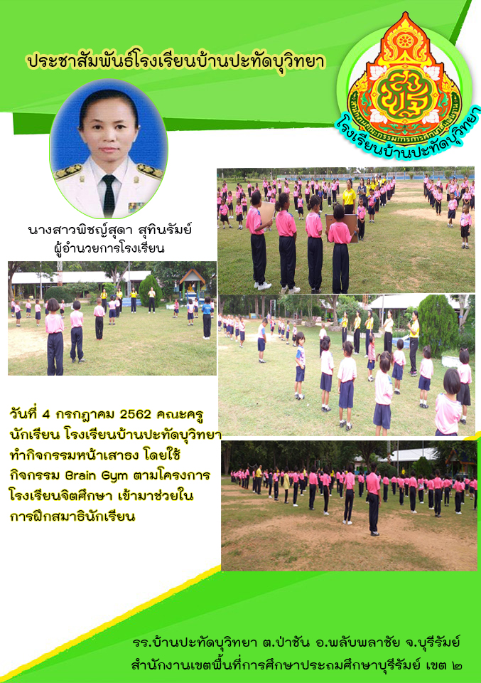 เข้าแถวหน้าเสาธงโดยใช้กิจกรรม Brian Gym ตามโครงการจิตศึกษา