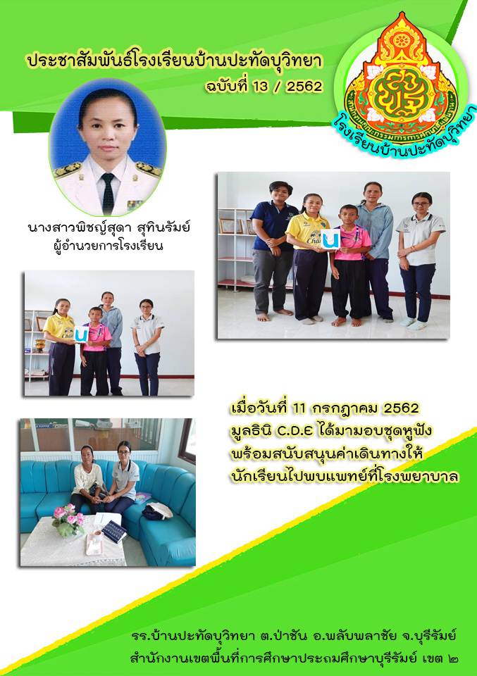 มูลนิธิ C.D.E มอบหูฟัง และ ค่าพาหนะให้นักเรียนไปพบแพทย์