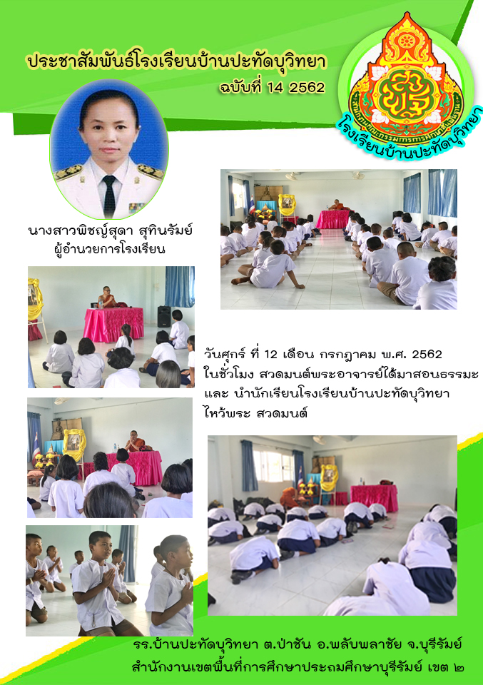 พระอาจารย์มาสอนนักเรียนพร้อมกับพาสวดมนต์ นั่งสมาธิ