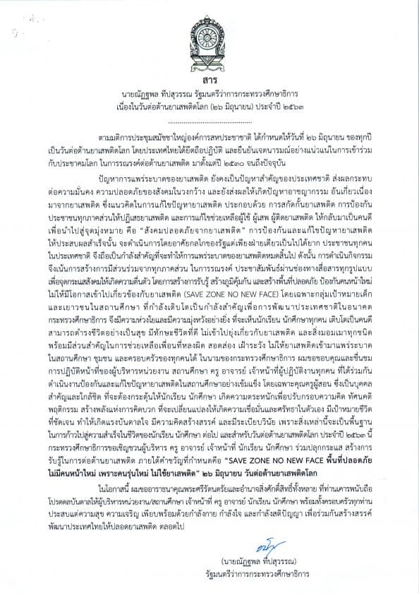 สาร นายณัฏฐพล  ทีปสุวรรณ รัฐมนตรีว่าการกระทรวงศึกษาธิการ เนื่องในวันต่อต้านยาเสพติดโลก (26 มิถุนายน) ประจำปี 2563